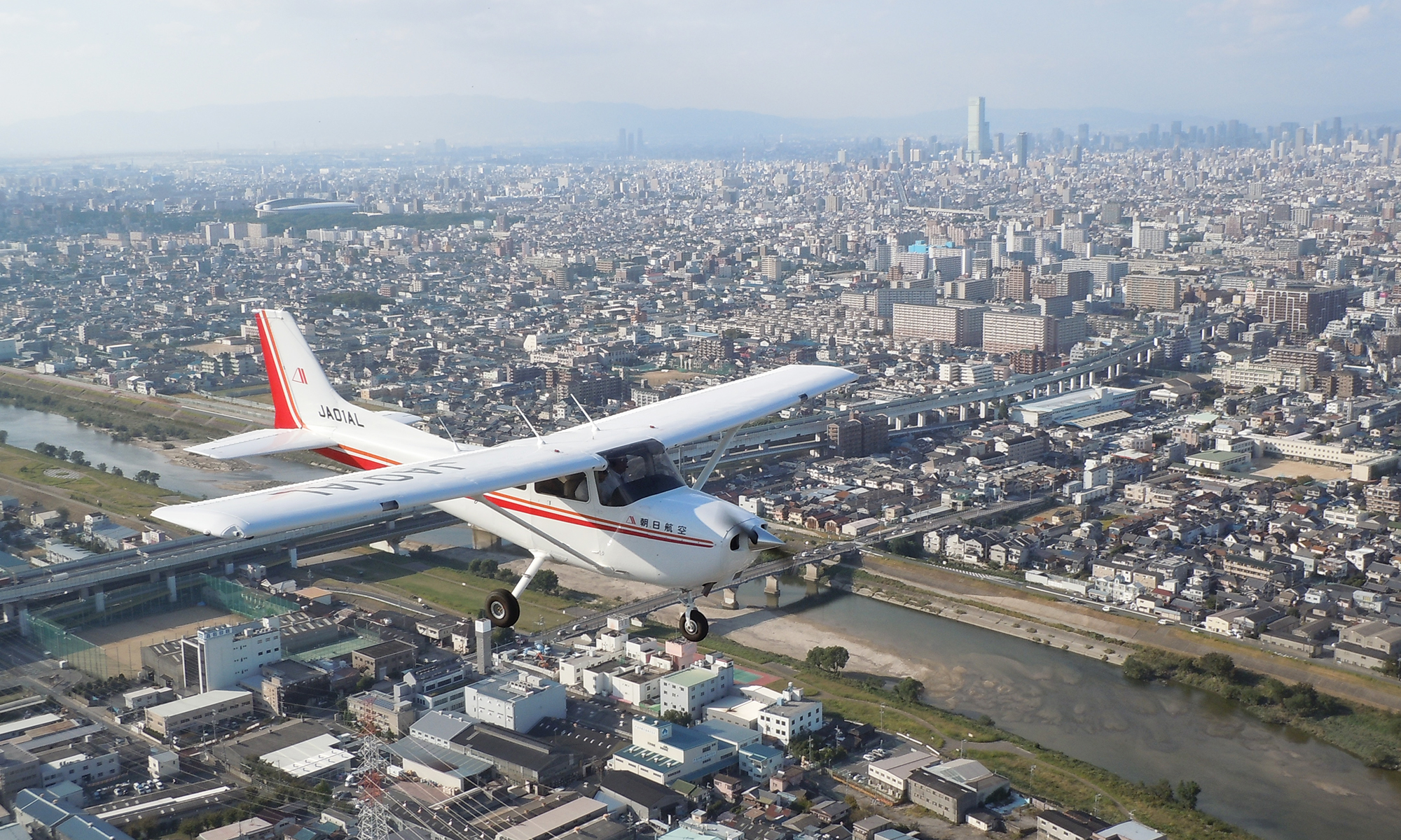 大阪市内・USJ・南港上空を飛行する大阪コース(20分)、六甲山・ポートアイランド・三宮上空を飛行する神戸コース(35分)があり、飛行機とヘリコプターからチョイスできる。機内での音楽配信サービス(700円)や、記念日に花束を贈呈できるオプション(3,500円)もある。